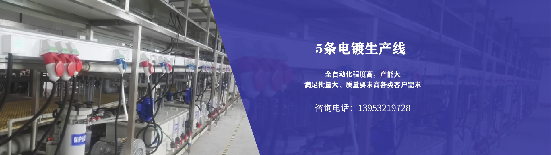 共有5條電鍍生產(chǎn)線,專門從事金屬表面電鍍處理,全自動化程度高,產(chǎn)能大